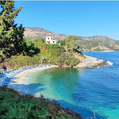 We always did the bakery run together and either had breakfast at the apartment or on the beach, once set up for the day, depending on the time. So we went back to the coves, not the one we used to go to, as it was smaller than we remembered and there was now access to a cove further along the path, a path that wasn't there before. You used to have to scramble over the rocks, which we're pretty sure made this cove inaccessible.