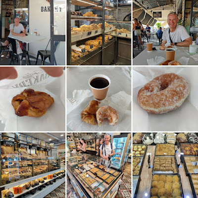 The very busy popular Spathis Bakery. We were very lucky to grab a seat to enjoy the best doughnut!! Bought bakery bits for lunch before heading back over the road, to the back of the fisherman's area